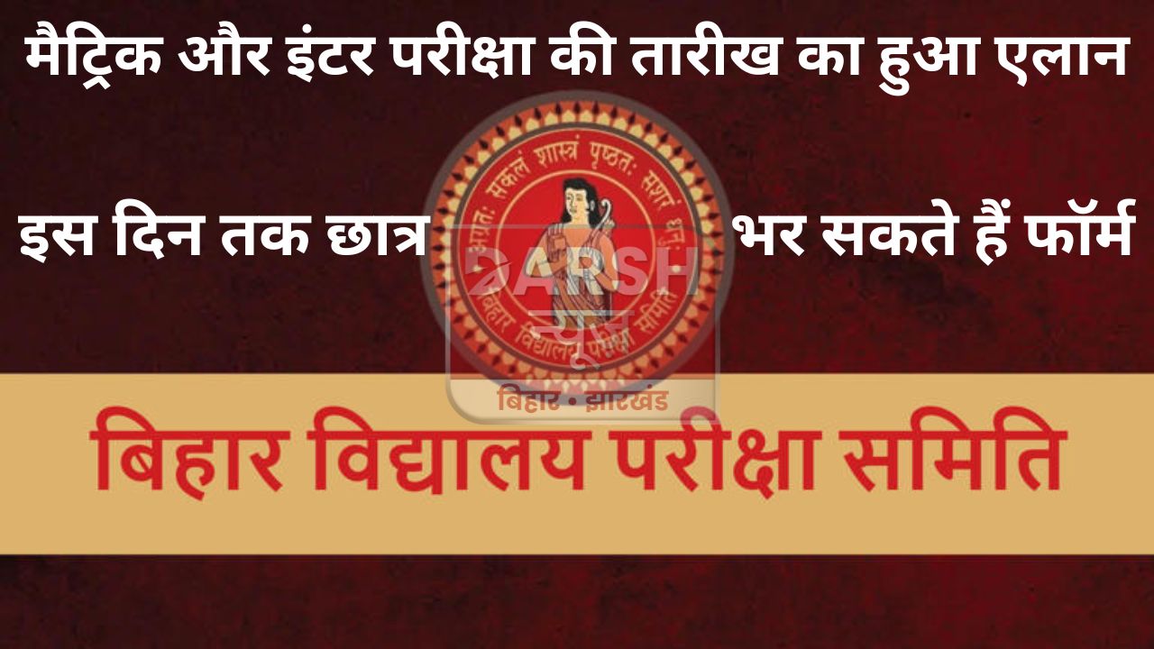 पटना: बिहार विद्यालय परीक्षा समिति ने वर्ष 2026 में होने वाले इंटर और मैट्रिक की परीक्षा की तारीखों का एलान कर दिया है। परीक्षा की तिथियाँ सामने आते ही अब परीक्षार्थी जोर शोर से तैयारी में जुट जायेंगे। बिहार परीक्षा समिति की तरफ से जारी शेड्यूल के अनुसार पहले इंटर की परीक्षा ली जाएगी जो कुल 12 दिनों तक चलेगी। इन्हीं 12 दिनों में विज्ञान, आर्ट्स और कॉमर्स संकाय के छात्रों की परीक्षा ली जाएगी जबकि इसके बाद मैट्रिक की परीक्षा 9 दिनों में खत्म हो जाएगी।