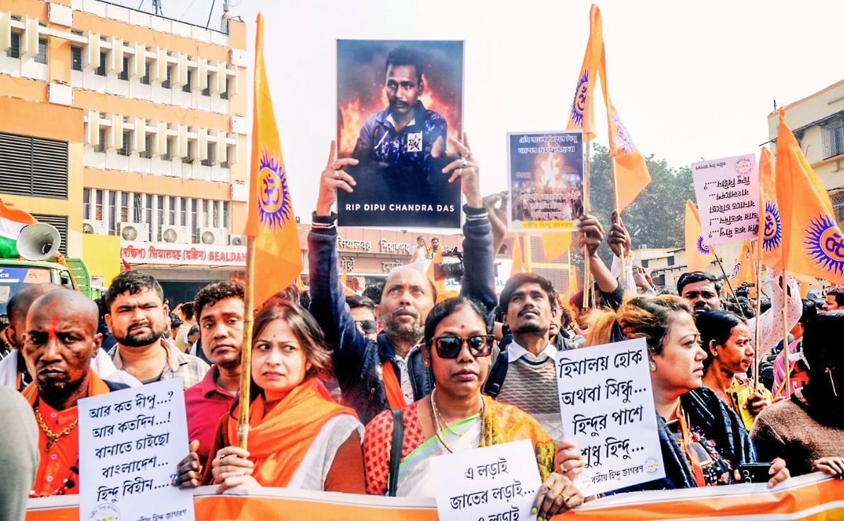 इस दौरान प्रदर्शनकारी ने आरोप लगाया कि बंगाल की पुलिस ऐसे बर्ताव कर रही है, जैसे वह बांग्लादेश में हमारे भाइयों को पीट-पीटकर मारने वालों को संरक्षण देना चाहती हो। इस साल की शुरुआत में मुर्शिदाबाद में भीड़ द्वारा हिंदुओं को पीट-पीटकर मार डालने के दौरान पुलिस ने दोषियों के खिलाफ कार्रवाई करने में ऐसी तत्परता नहीं दिखायी थी।