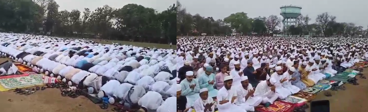 भागलपुर के सिटीएस ईदगाह मैदान में शनिवार को ईद-उल-फितर की नमाज अदा की गई, जिसमें करीब 20 हजार लोगों ने हिस्सा लिया। नमाज के बाद देश-दुनिया में अमन-चैन और खुशहाली की दुआ मांगी गई। मौके पर प्रशासन की ओर से कड़ी सुरक्षा व्यवस्था रही और कई अधिकारी तैनात रहे।