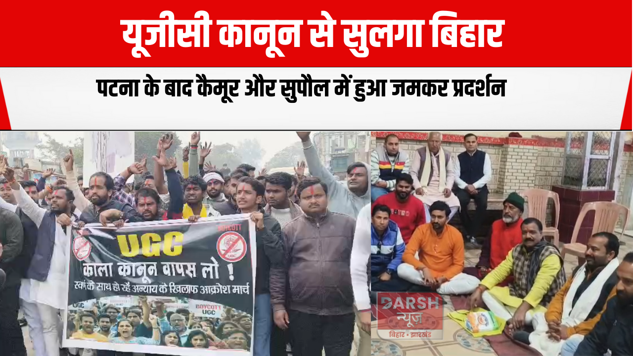 यूजीसी कानून को लेकर बिहार में विरोध लगातार तेज होता जा रहा है। छात्रों और युवाओं का कहना है कि यह कानून उनके भविष्य के लिए घातक साबित होगा। इसी कड़ी में कैमूर जिले में युवाओं ने जोरदार विरोध मार्च निकाला, वहीं सुपौल जिले में इस कानून के खिलाफ संगठनात्मक रूप से आंदोलन को आगे बढ़ाने की तैयारी शुरू हो गई है। कैमूर जिले के रामगढ़ नगर में यूजीसी कानून के विरोध में युवाओं का गुस्सा सड़कों पर साफ देखने को मिला। बड़ी संख्या में छात्र और युवा दुर्गा चौक पर एकत्र हुए और वहां से जीबी कॉलेज तक शांतिपूर्ण विरोध मार्च निकाला। यह जुलूस रामगढ़ बाजार के मुख्य मार्गों से गुजरते हुए कॉलेज परिसर तक पहुंचा। मार्च के दौरान युवाओं ने हाथों में तख्तियां लेकर सरकार के खिलाफ नारेबाजी की।“यूजीसी कानून वापस लो” और “युवाओं के भविष्य से खिलवाड़ बंद करो” जैसे नारों से पूरा क्षेत्र गूंज उठा।