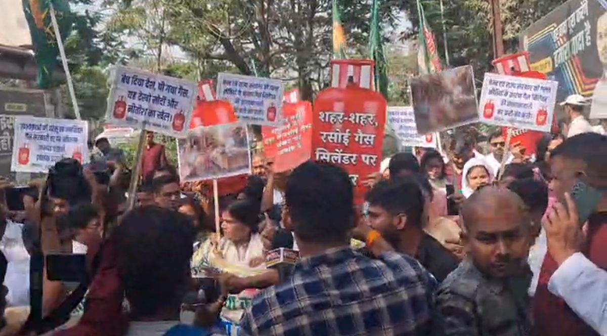 पटना: मिडिल ईस्ट में चल रहे युद्ध की वजह से पूरी दुनिया में इंधन का संकट खड़ा हो गया है। भारत में भी रसोई गैस की कमी का मामला सामने आ रहा है। रसोई गैस की कमी की वजह से लोगों को हो रही परेशानी की वजह से मंगलवार को राजधानी पटना में विपक्ष सड़क पर उतर गई है। राजद और कांग्रेस के कार्यकर्ता साथ में मिल कर राजधानी पटना में प्रदर्शन कर रहे हैं और प्रधानमंत्री का पुतला दहन किया। इस दौरान कार्यकर्ताओं ने हाथ में बैनर पोस्टर के साथ ही गैस सिलिंडर भी ले रखा था और मोदी-नीतीश के विरुद्ध जम कर नारेबाजी की।